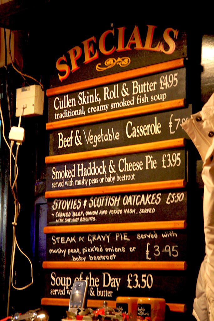 W pubie można także zjeść coś z niewielkiego, szkockiego menu.
