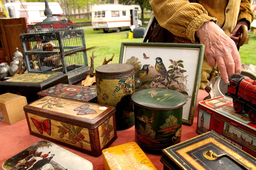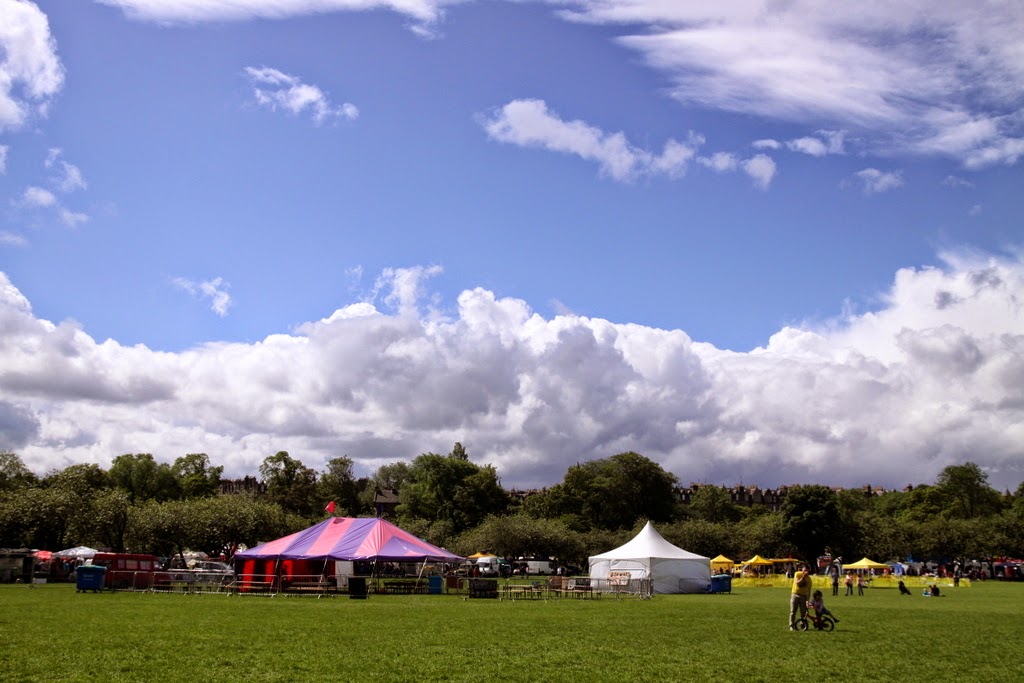 Dookoła parku rozstawione były kramy z najprzeróżniejszymi akcesoriami, głównie były to stragany ze starociami, te oczywiście interesowały mnie najbardziej, udało się wypatrzeć kilka fantastycznych rzeczy, które postaram się pokazać Wam w którymś z kolejnych postów. Na festiwalu prezentowały się również różne organizacje charytatywne, społeczne i informacyjne, w tym przedstawiciele ugrupowań nawołujących do głosowania w referendum dotyczącym odłączenia się Szkocji od Wielkiej Brytanii (postaram się napisać o tym kilka słów, choć muszę przyznać, że jestem absolutnie apolityczna i w ogóle nie znam się na polityce). Znajdowało się tam również mnóstwo straganów z wszelkiego rodzaju jedzeniem.