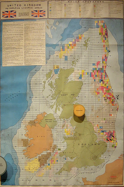 Powyższa mapa jest dla mnie dużą ciekawostką i sporą atrakcją – ukazuje obszary należące do poszczególnych firm naftowych na terenie wód terytorialnych Wielkiej Brytanii. Na tej podstawie widać gdzie występują złoża ropy naftowej pod dnem morza. Mapa pochodzi z lat 70-tych XX wieku, i z pewnością wiele od tego czasu się zmieniło (część złóż została wyeksploatowana, niektóre firmy przestały istnieć, zmieniły nazwę lub właściciela), jednak mimo tego daje piękny obraz występowania i wydobywania złóż, tego czego na co dzień nie widzimy, a czasem nawet nie zdajemy sobie sprawy.