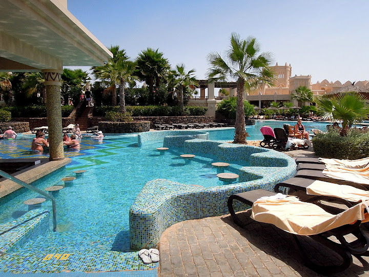 Hotel, który wybraliśmy (napiszę o nim więcej w osobnym poście) położony był w odludnej części wyspy i w jego okolicy nie było zupełnie nic. Kompleks jest samowystarczalny, wszystko jest na miejscu, a dla spragnionych zakupów na terenie hotelu jest nawet kilka sklepików (z pamiątkami i ubraniami, a także spożywczego, gdzie spragnieni Brytyjczycy kupowali swoje ulubione chipsy!). Wieczorami przy barach było gwarno, ludzie zbierali się tu, aby obejrzeć występ artystyczny, posiedzieć w gronie innych wczasowiczów lub poklikać w internet, ponieważ w głównym lobby było wi-fi. Po występach artystycznych można było udać się na karaoke, gdzie jedni śpiewali, a inni tańczyli i dobrze się bawili. Jeszcze później, jeśli ktoś miał ochotę, można było zajrzeć na dyskotekę i tu się wyszaleć. Atrakcje te są usytuowane z dala od mieszkalnej części hotelu i z pewnością nikomu nie przeszkadzały, a co więcej dyskoteka była wytłumiona i nawet nie było jej słychać przed drzwiami wejściowymi, a muszę dodać, że w środku wcale nie było cicho.