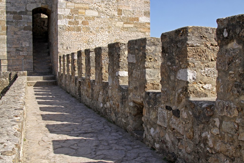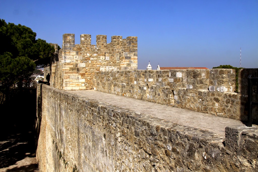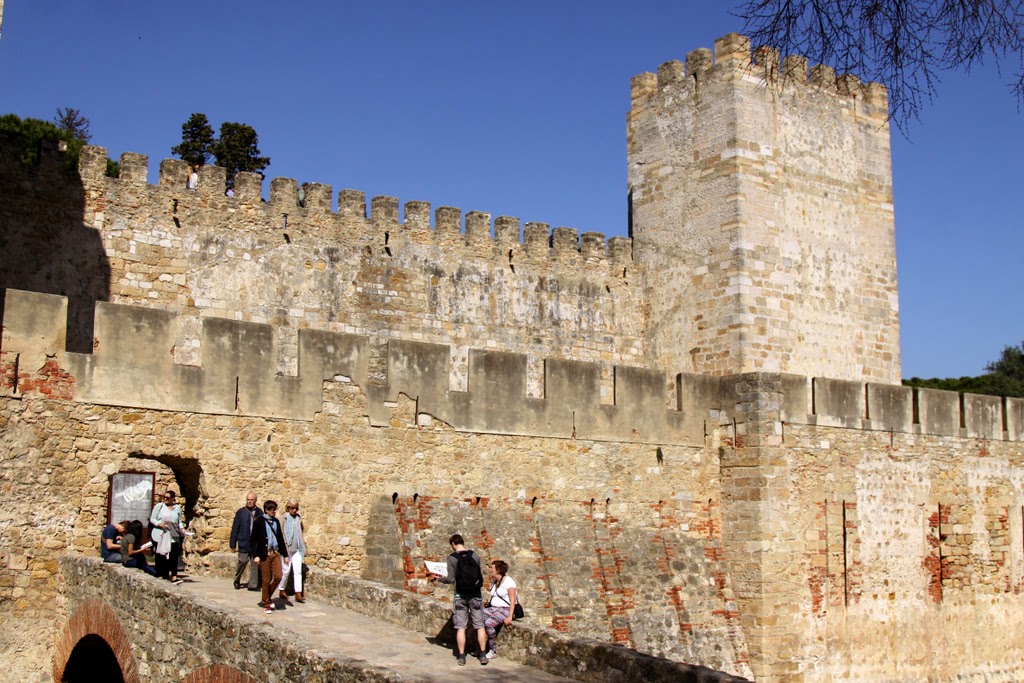 Następnie udaliśmy się na zamek. Jest to rozległa budowla, gdzie można się szwendać i spacerować godzinami, a ponieważ znajduje się on na jednym ze wzniesień, rozpościera się z niego wspaniały widok na całą Lizbonę. Można obserwować z niego rzekę Tag ze wspaniałym wiszącym mostem, place i architekturę miasta.