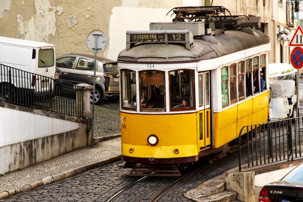 Lizbońskie tramwaje są najbardziej charakterystycznym elementem miasta. Linie poprowadzone są wąskimi, malutkimi, krętymi uliczkami. Warto przejechać się takim tramwajem, aby poczuć prawdziwy klimat miasta, a przy okazji odwiedzić najciekawsze miejsca, atrakcje i punkty widokowe. Najbardziej charakterystyczną trasę ma tramwaj nr 28, którym możemy dojechać pod zamek, pod Katedrę Se, na punkt widokowy Graca oraz na Plac Moniz.